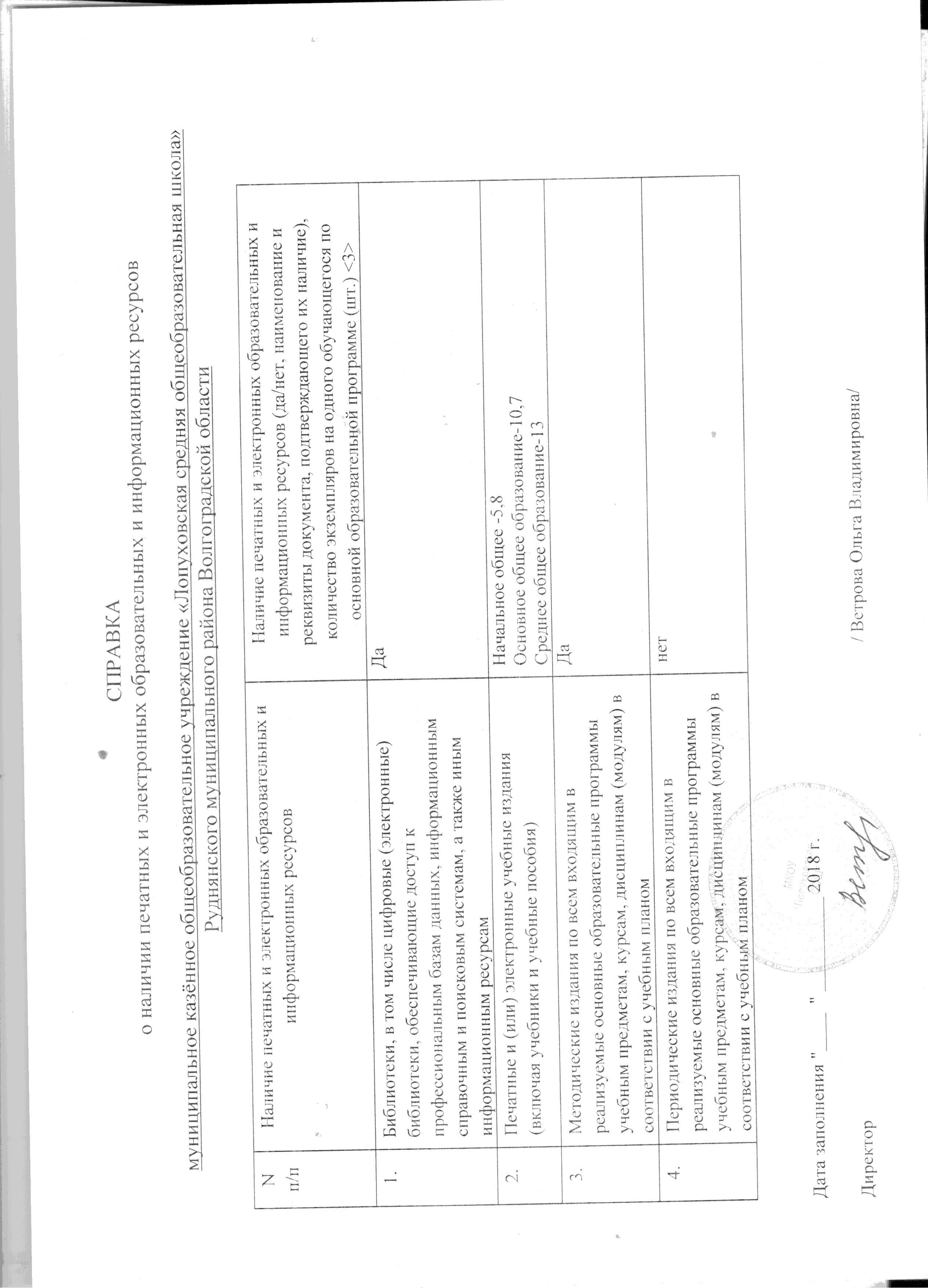 Справка о наличии печатных и электронных образовательных и информационных ресурсов